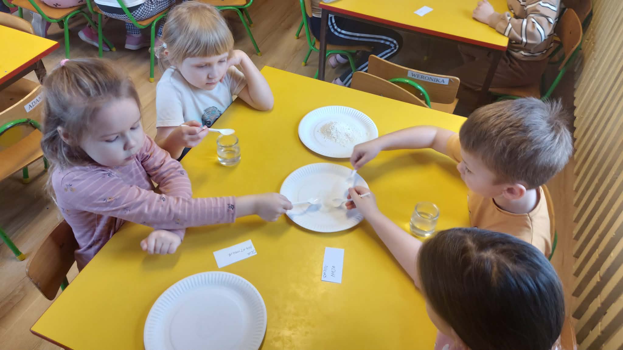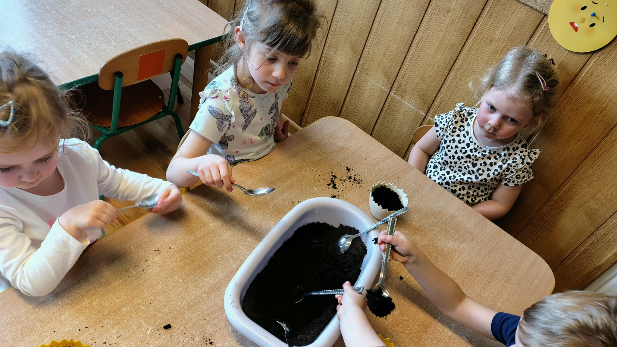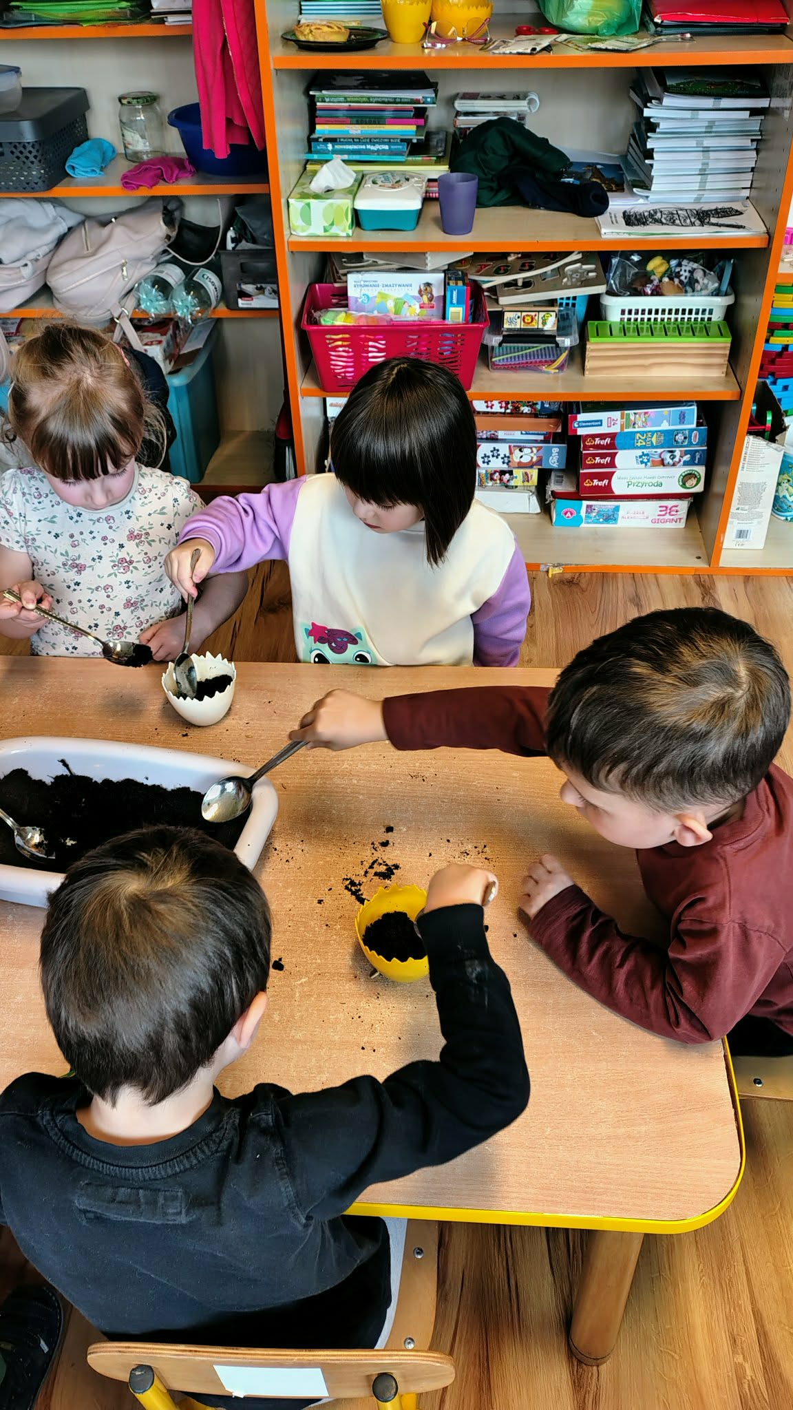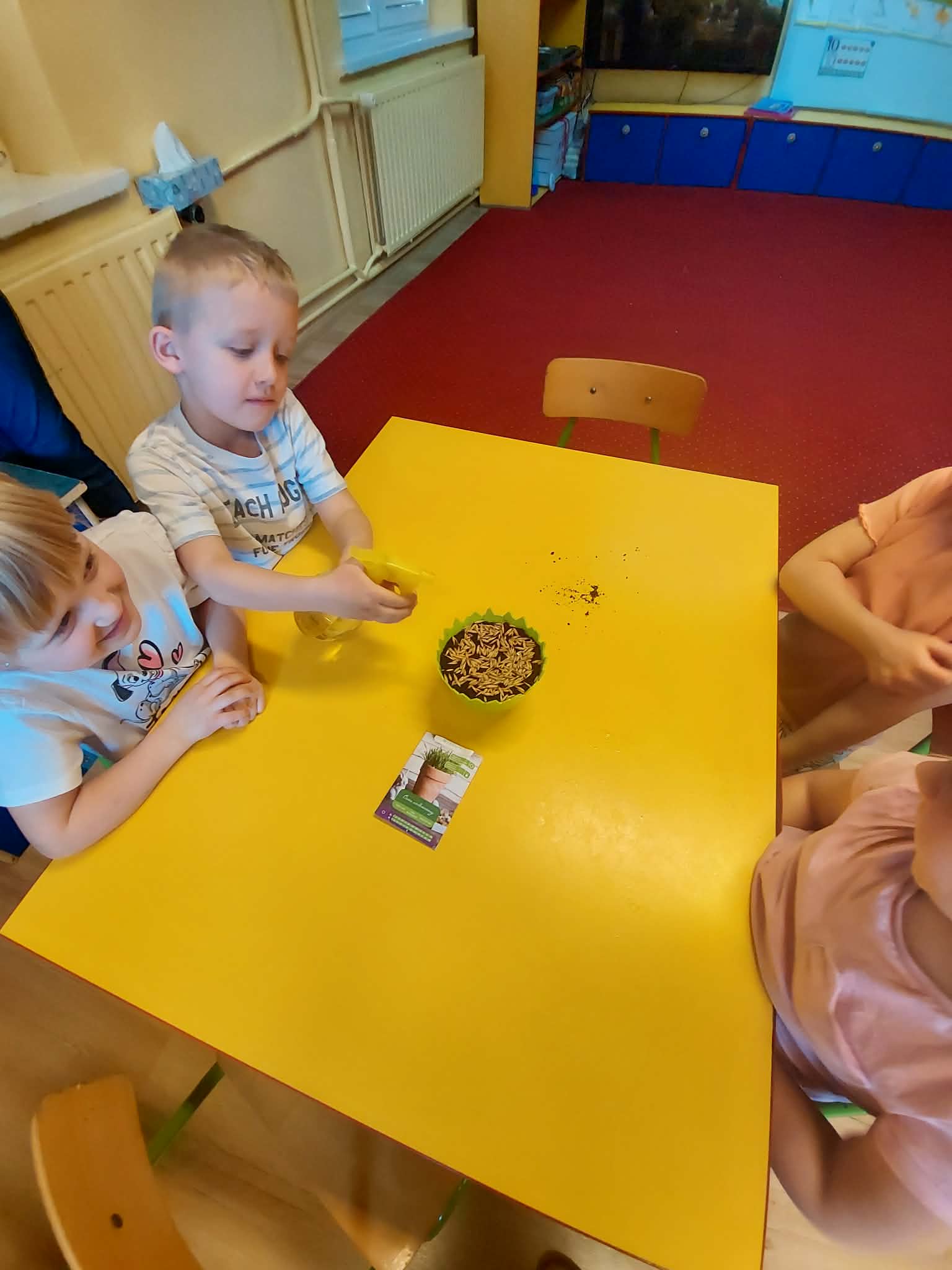 W sali przedszkolnej gr. I dzieci siały owies i rzeżuchę do przygotowanych ozdobnych pojemniczków. Maluszki wzbogaciły wiadomości dotyczące sposobu hodowania wybranych roślin oraz przeżywały pozytywne emocje podczas wspólnej pracy.