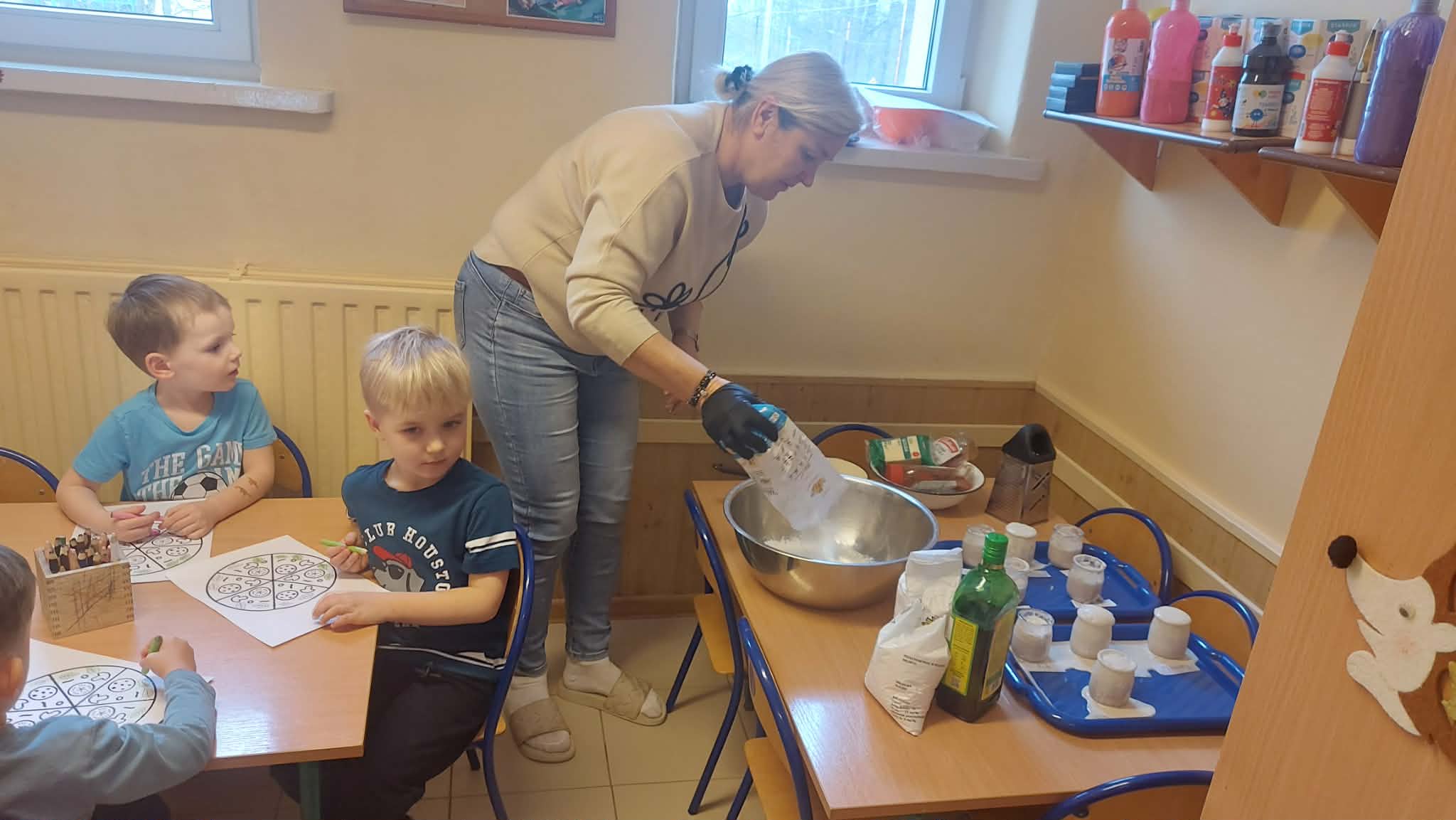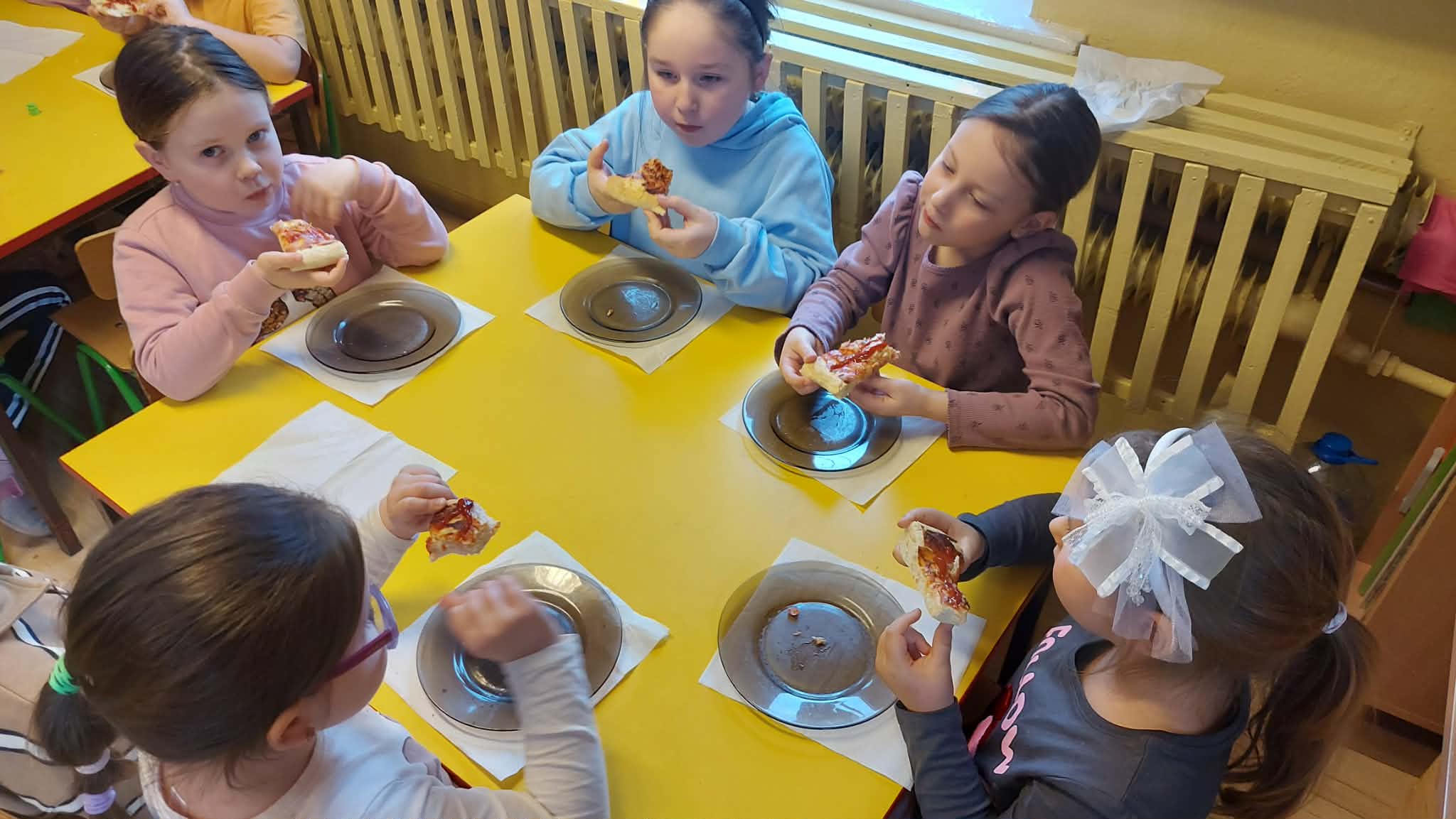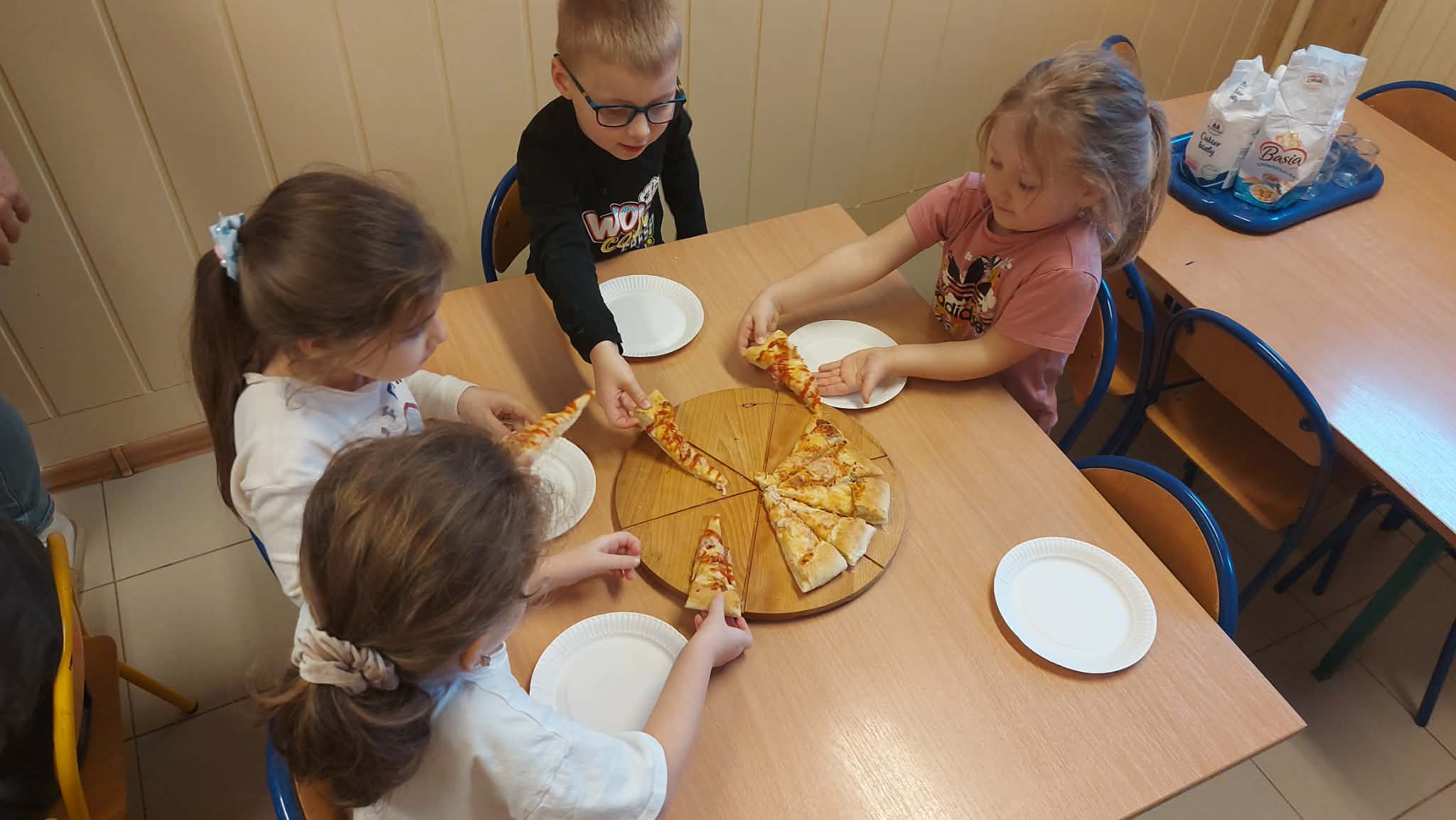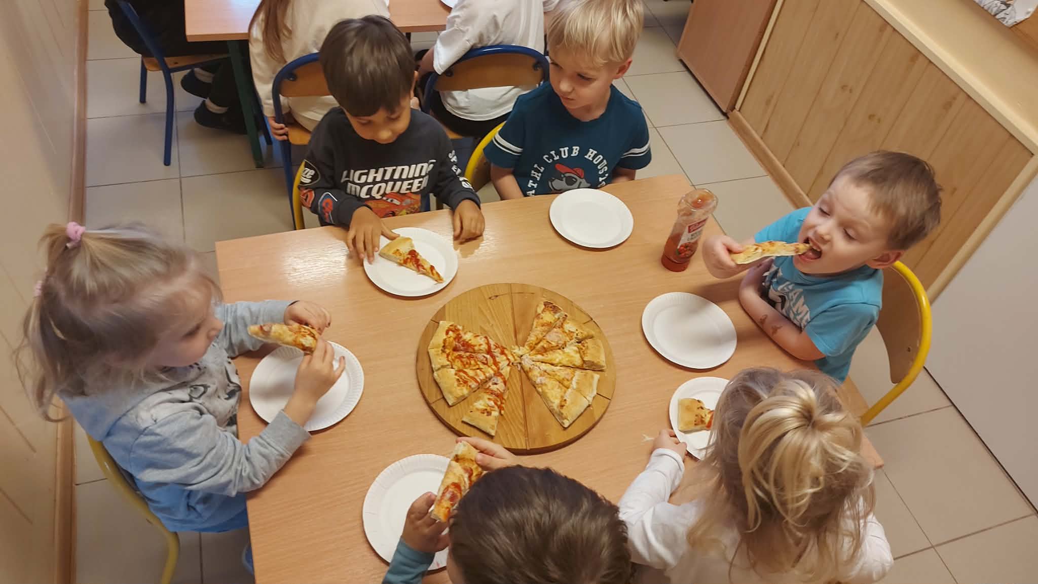 9 lutego w ramach obchodów Dnia Pizzy nasze przedszkolaki wzięły udział w zajęciach kulinarnych. Samodzielnie przygotowały zaczyn z drożdży, wody, soli, mąki oraz cukru. Następnie obserwowały zachodzące zmiany i proces wyrastania zaczynu, zwracając uwagę na jego objętość i konsystencję. Po wyrośnięciu zaczynu wspólnie przygotowaliśmy ciasto na pizzę. Zwieńczeniem zajęć było przygotowanie pizzy Margherita!