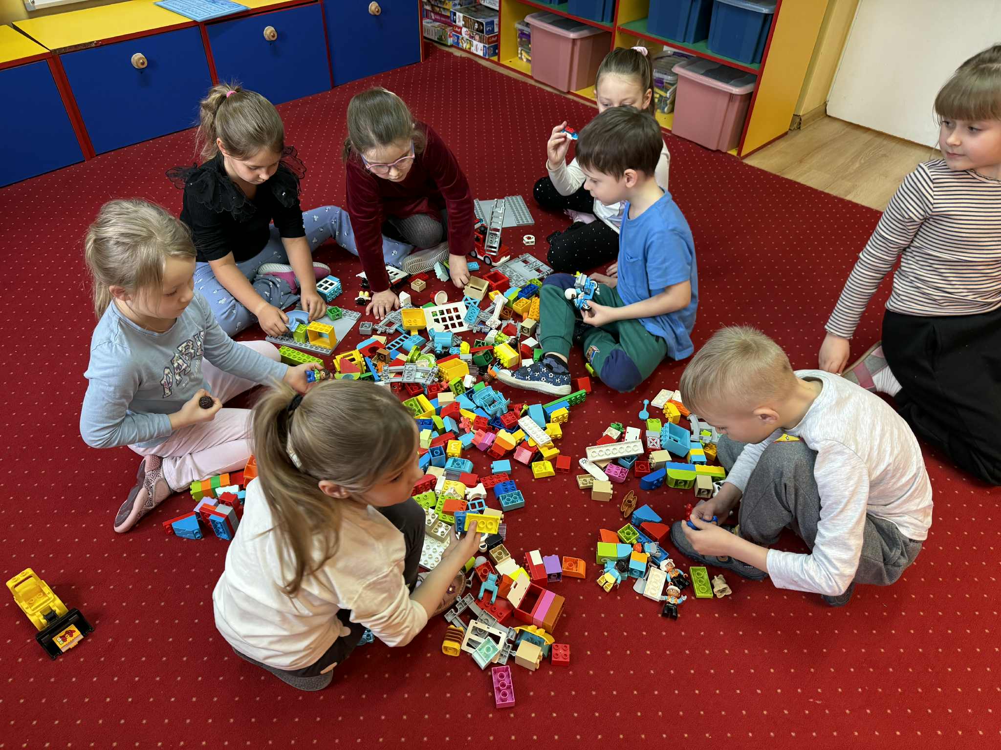 28 stycznia starszaki wzięły udział w zajęciach z okazji Dnia Lego. Podczas zajęć przedszkolaki zapoznały się z historią powstania klocków Lego. Oczywiście nie zabrakło również zabaw z klockami! Starszaki wykonywały zadania matematyczne, które w atrakcyjny sposób rozwijały umiejętność liczenia, porównywania oraz logicznego myślenia. Starszaki z wielkim zaangażowaniem uczestniczyły w zabawach konstrukcyjnych, budując wspaniałe i pomysłowe budowle. Na koniec dzieci kolorowały i ozdabiały ludzika Lego.