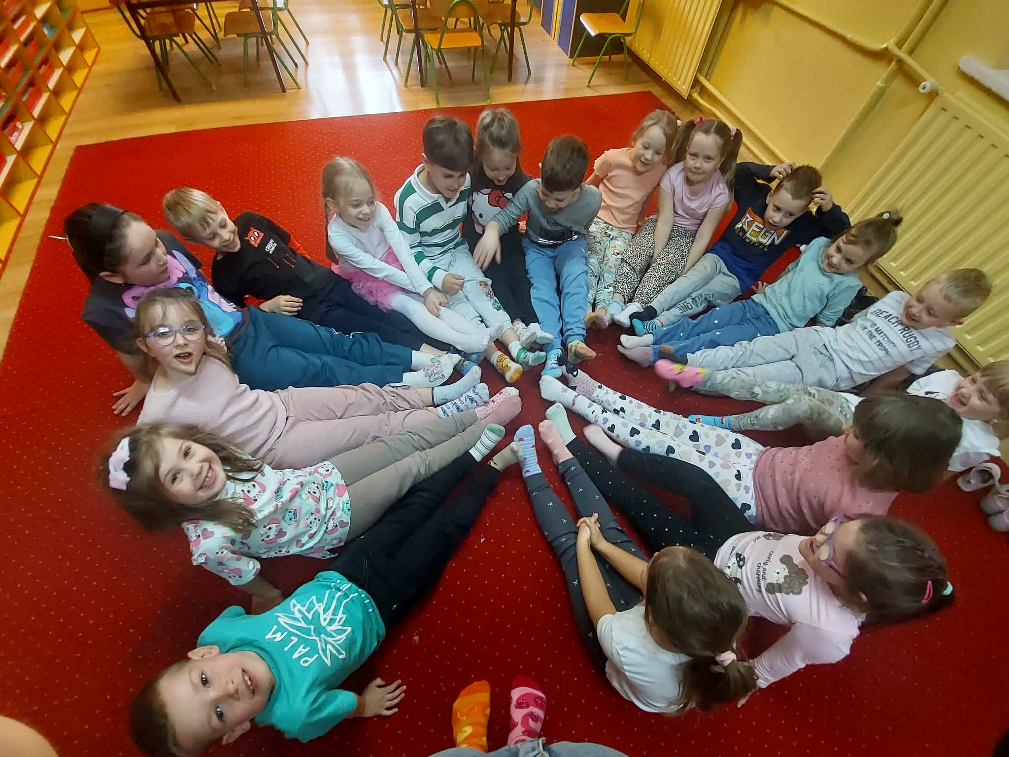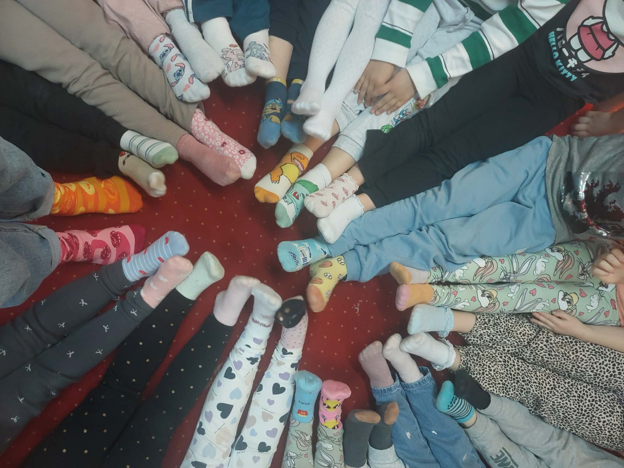 21 marca obchodzony jest Światowy Dzień Osób z Zespołem Downa, zwany również Dniem Kolorowej Skarpetki. Celem jest zwiększenie świadomości na temat Zespołu Downa oraz promowanie wartości takich jak różnorodność, akceptacja i inkluzja.W tym dniu starszaki chcąc okazać solidarność z osobami z Zespołem Downa założyły kolorowe skarpetki nie do pary oraz wykonały kolorową skarpetkową girlandę.
