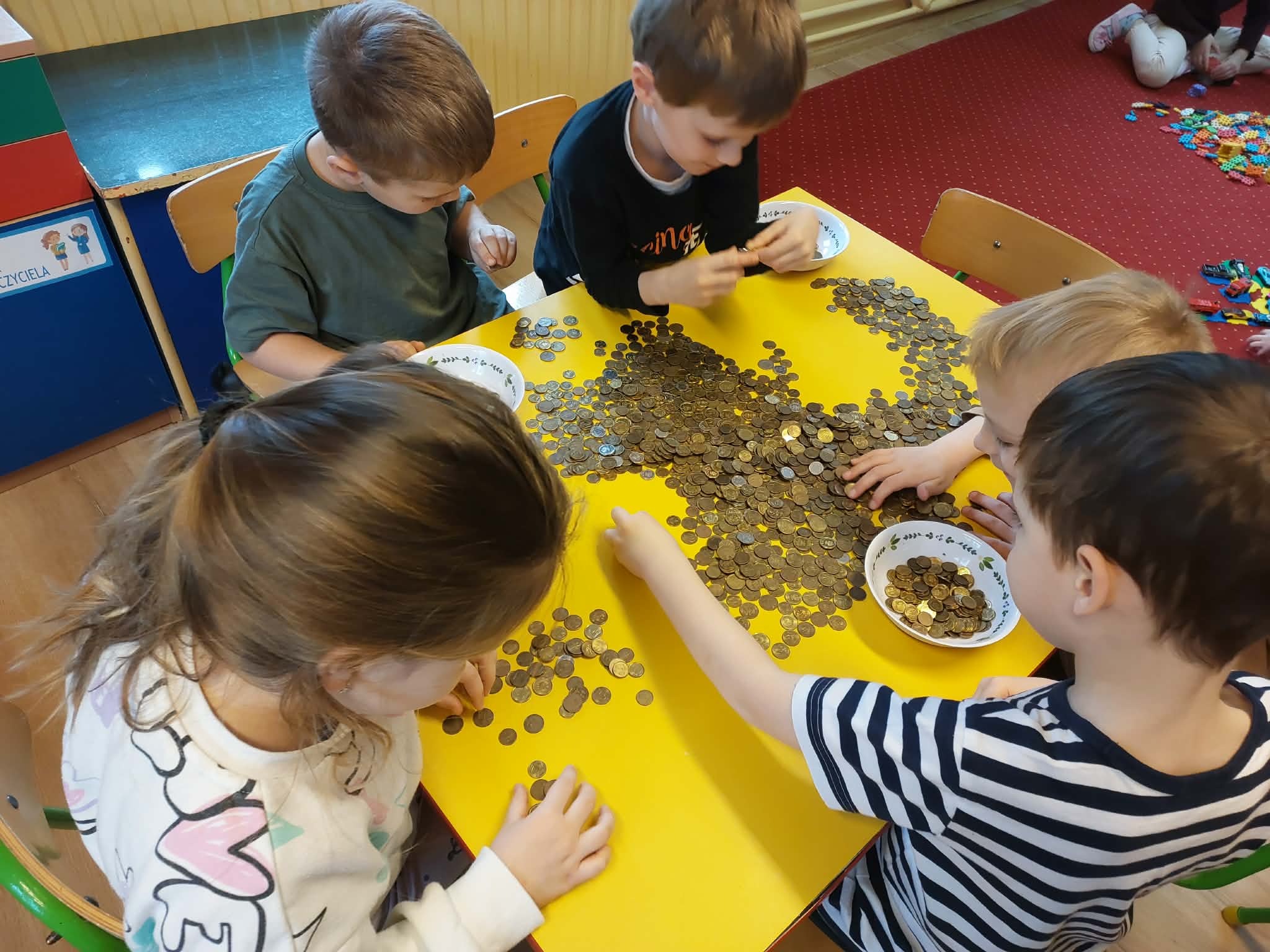W dniach od 4 listopada 2024 do 20 stycznia 2025 r. w przedszkolu W Wielkich Drogach odbyła się zbiórka pieniędzy w ramach ogólnopolskiej akcji „Góra Grosza” organizowanej przez „Towarzystwo Nasz Dom”. Jest to akcja o charakterze dobroczynnym, a jej głównym celem jest zebranie środków pieniężnych na pomoc dzieciom, które z różnych przyczyn wychowują się się poza swoją rodziną– w domach dziecka, placówkach opiekuńczych lub rodzinach zastępczych. Przedszkolaki wraz ze swoimi rodzinami wykazały się wielkim sercem i bardzo aktywnie przyłączyły się do akcji. Po zakończeniu akcji przedszkolaki z wielkim zaangażowaniem segregowały wszystkie monety, a następnie pod okiem nauczycielek przeliczały pieniądze. W przedszkolu w Wielkich Drogach zebrano łącznie kwotę 198,83 zł. Zebrane środki zostały następnie odpowiednio spakowane i przesłane na adres wskazany przez organizatora akcji. Udział w akcji pomógł zrozumieć przedszkolakom, że najmniejsza pomoc i nawet jeden grosz, ma dużą wartość i może pomóc dzieciom znajdującym się w trudnej sytuacji życiowej.
