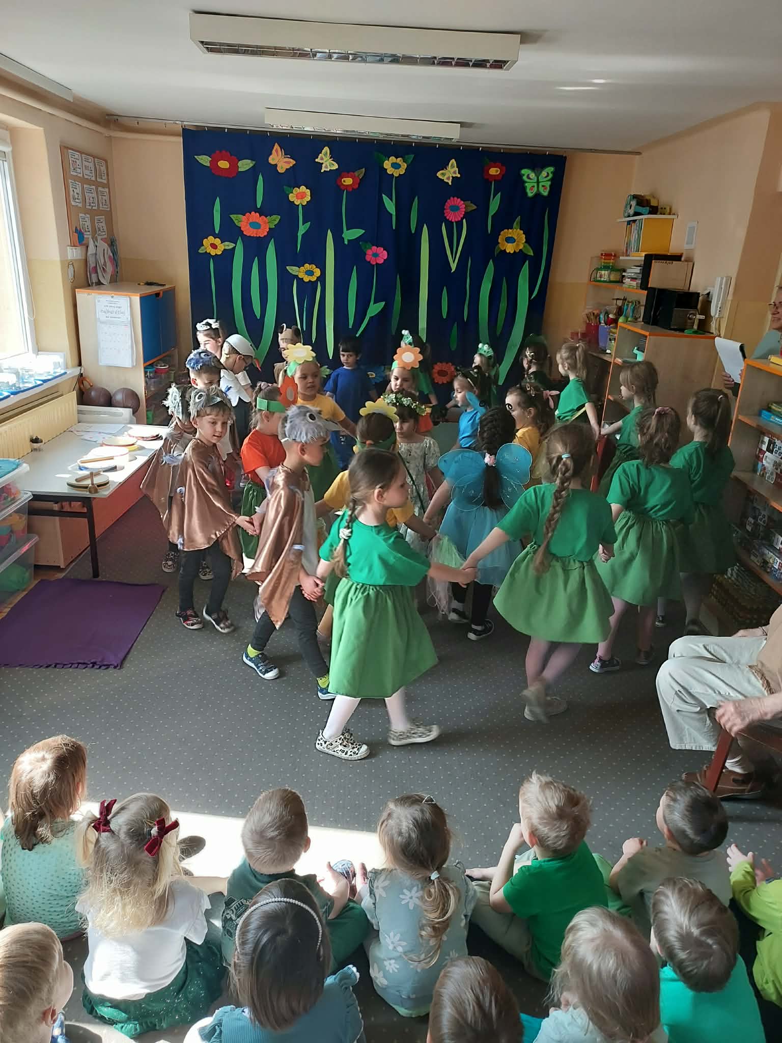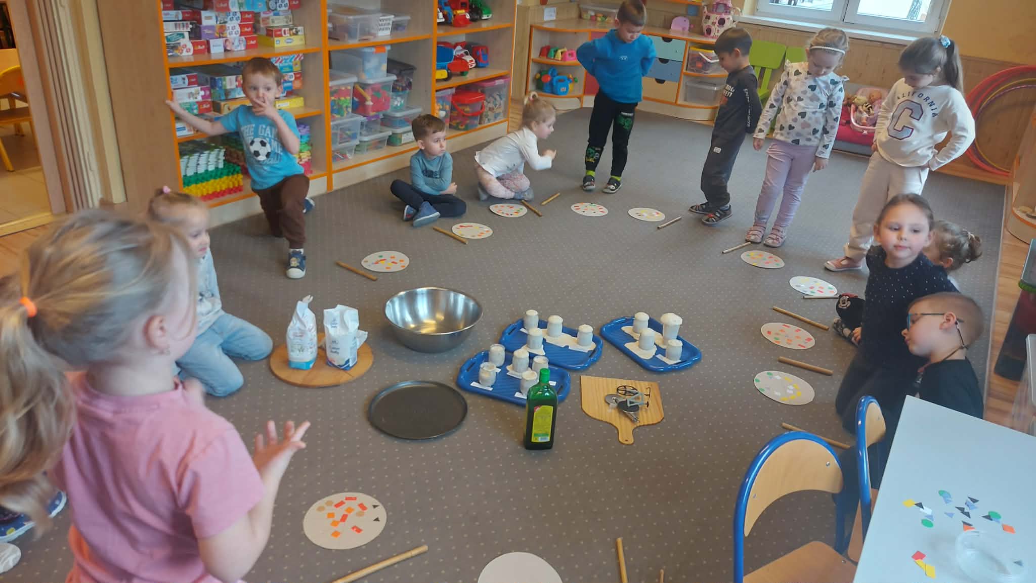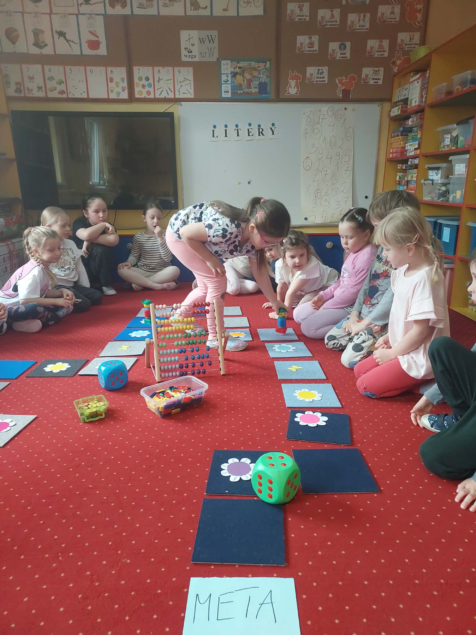 16 marca starszaki wzięły udział w "Wiosennej Grze" z okazji Międzynarodowego Dnia Matematyki. Przedszkolaki doskonaliły umiejętności matematyczne m.in. dodawanie, odejmowanie oraz klasyfikowanie, mierzenie za pomocą metra krawieckiego i linijki oraz kodowania. Starszaki podczas gry doskonaliły również umiejętność współpracy, czekania na swoją kolej oraz radzenia sobie z przegraną i wygraną.