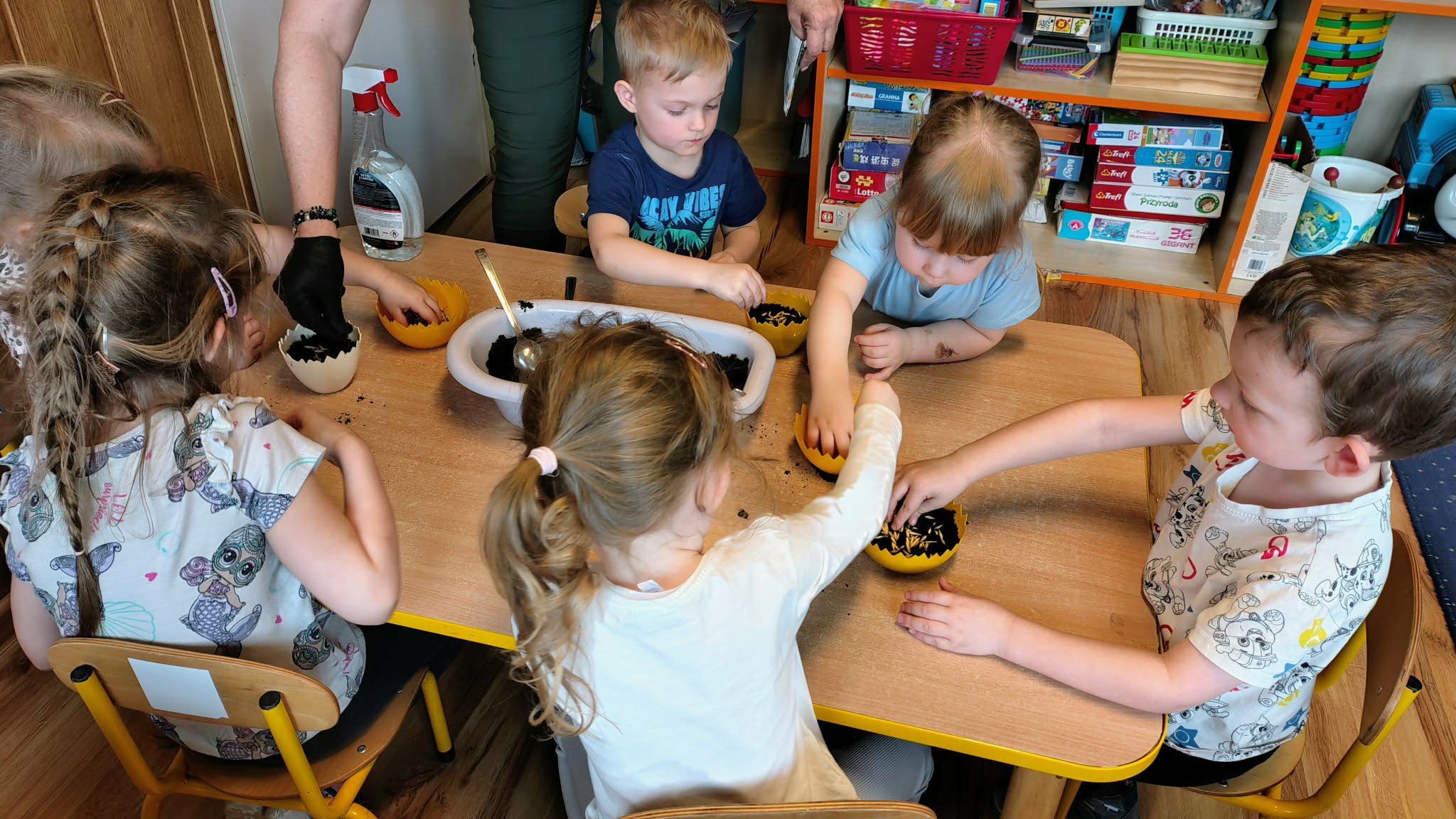 W minionym tygodniu dzieci z grupy Wiewiórki poznawały tradycje związane ze Świętami Wielkanocnymi. Starszaki siali rzeżuchę i owies wielkanocny. Dzieci wykonały kartkę świąteczną z życzemi dla rodziów oraz dekoracje wielkanocne. Dzieci wspólnie wykonały piękną pisankę XXL.