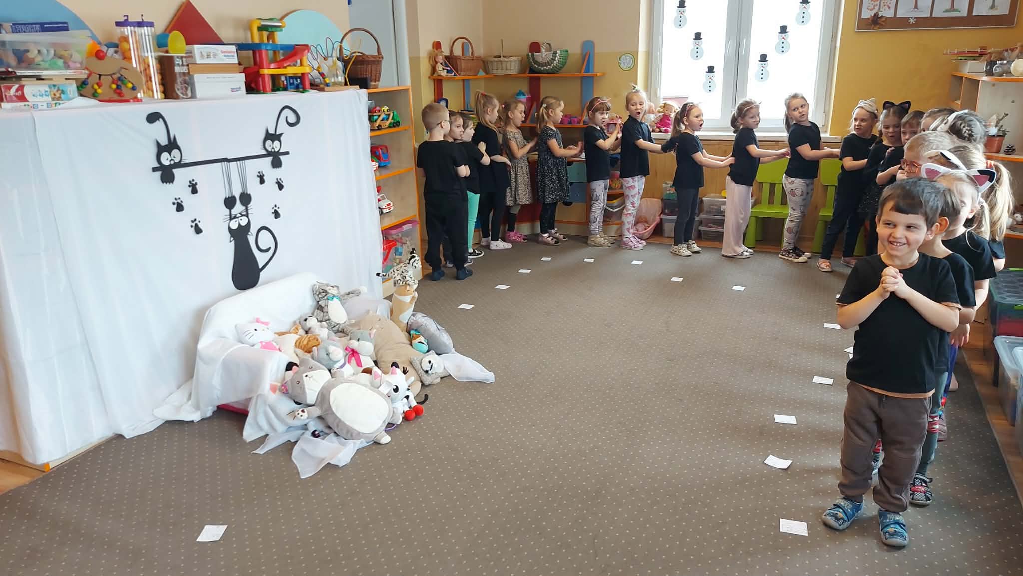 17 lutego przedszkolaki z gr. II i III wzięły udział w zajęciach z okazji Dnia Kota. Przedszkolaki zapoznały się z historią kota, jego wyglądem i super kocimi mocami. Wzięły również udział w zajęciach gimnastycznych i wykonywały zadania sprawnościowe, wymagające równowagi. Dzieci rozwiązywały także zagadki oraz zadania matematyczne. Przedszkolaki na koniec zajęć stworzyły "kocie" prace plastyczne.
