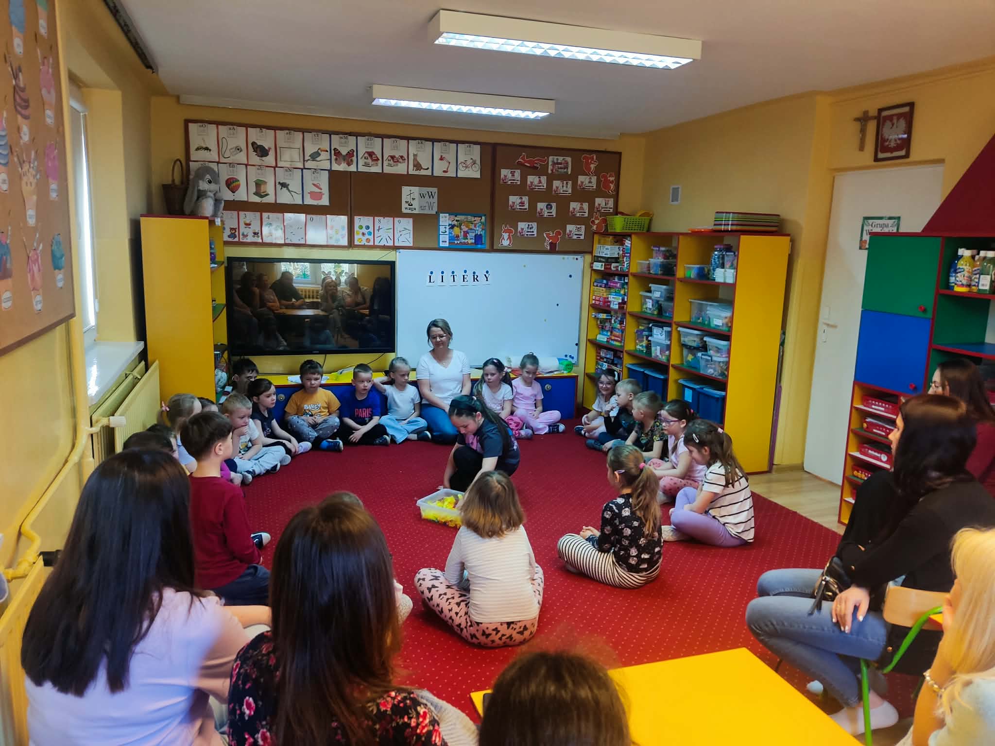 Mamy dzieci z naszej grupy przygotowały różnorodne aktywności – od czytania, przez zajęcia o zmysłach aż po wspólne zabawy ruchowe. Dzieci z ogromnym zaangażowaniem uczestniczyły w zajęciach, ciesząc się obecnością mam w roli prowadzących. Była to dla nich okazja do przeżycia czegoś nowego, a także do rozwijania swoich umiejętności społecznych, poznawczych i emocjonalnych. Wydarzenie przebiegło w ciepłej, rodzinnej atmosferze, pełnej uśmiechów, wzruszeń i radości. Dziękujemy wszystkim mamom pani Kamili, Iwonie, Małgorzacie, Elżbiecie i Lucynie za zaangażowanie, kreatywność i poświęcony czas. Takie inicjatywy nie tylko integrują społeczność przedszkolną, ale także pokazują dzieciom, jak ważna i cenna jest współpraca dorosłych w ich wychowaniu i edukacji.