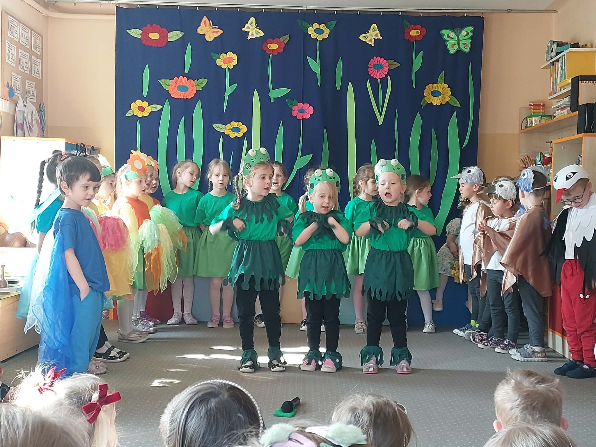 Po długiej zimie, chcemy ciepła, zielonych drzew i śpiewających ptaków. Dziś wszystkie dzieci świętowały Pierwszy Dzień Wiosny. Uroczystość powitania wiosny przedszkolaki rozpoczęły od obejrzenie kolorowego i radosnego przedstawienia w wykonaniu gr. "Motylki" pt. "Gdzie jesteś Wiosno?". Dzieci piękne przebrane, wierszem, tańcem i piosenkami przywitały najpięknięjszą porę roku- Wiosnę. Przedszkolaki wspólnie rozwiązywały wiosenne zagadki, bawiły się w rytmie wesołych piosenek oraz wykonywały zadania przygotowane przez Panią Wiosnę. To był wyjątkowy dzień, który wprowadził nas w radosny, wiosenny nastrój.