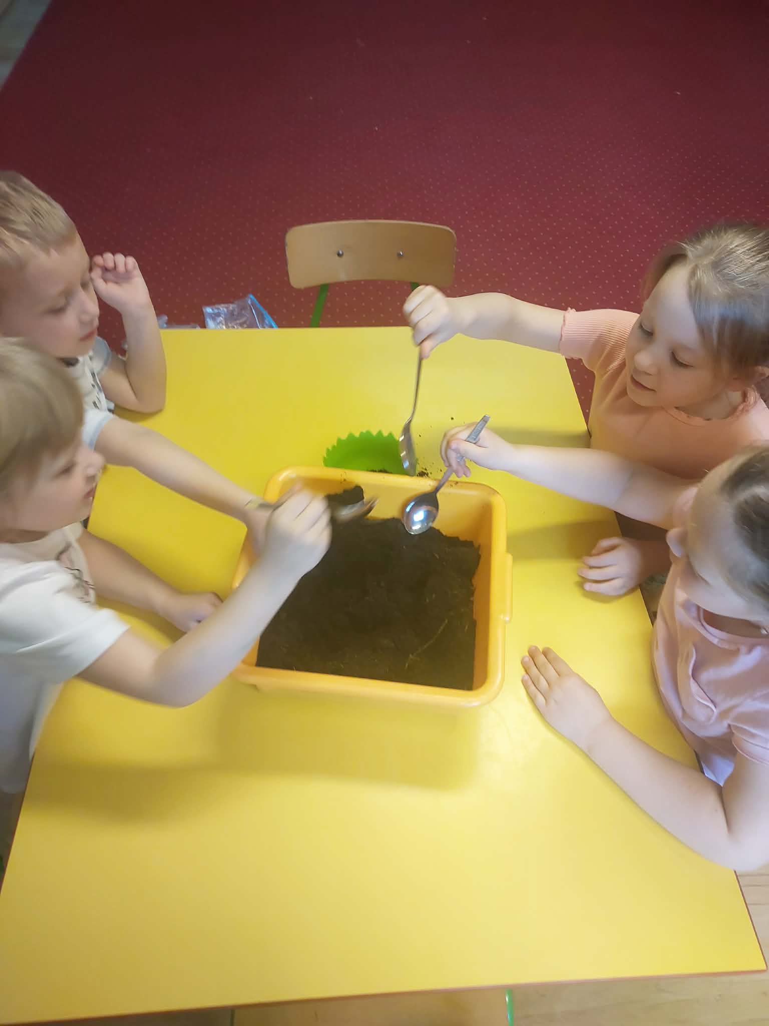 Średniaki w ramach zajęć dotyczących ogrodnictwa postanowiły założyć własną hodowlę. Zanim dzieci przystąpiły do działania poznały proces hodowli fasoli, a następnie na podstawie informacji i własnych doświadczeń zasadziły rośliny. Dzieci codziennie pielęgnują i obserwują wzrost roślin.